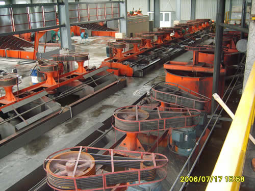 鎮(zhèn)江韋崗鐵礦有限公司2004年使用我公司設(shè)備,現(xiàn)有2.1米球磨機(jī)6臺(tái);2FG-20分級(jí)機(jī)3臺(tái)、2FC-20分級(jí)機(jī)3臺(tái);BF-4浮選機(jī)24槽;XB-3.0攪拌槽3臺(tái)等全套設(shè)備。